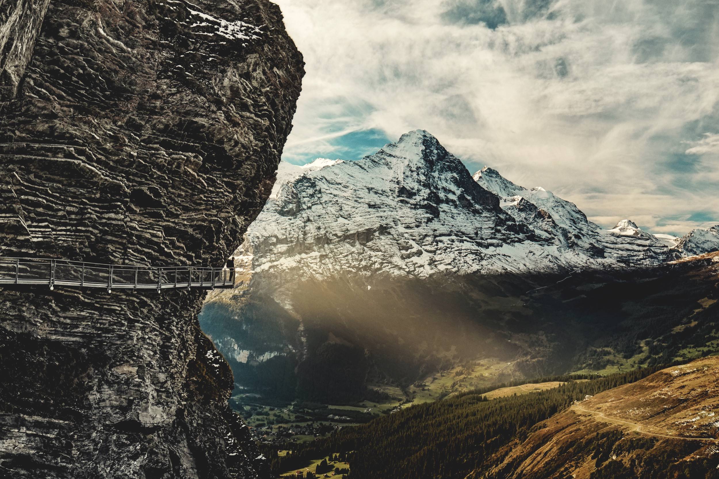 <ベルナーアルプス(ユングフラウ地域)のロケ地おすすめルート> ①インターラーケン・オスト駅から登山鉄道を乗り継いで、クライネシャイデック経由ユングフラウヨッホヘ(約2時間) ↓ ②ユングフラウヨッホ観光後、登山鉄道でアイガーグレッチャーまで下り、最新ゴンドラ「アイガーエクスプレス」でグリンデルワルト・ターミナル駅。登山鉄道でグリンデルワルトへ(約1時間半)。 ↓ ③グリンデルワルトのメイン通りを歩きフィルスト・ゴンドラ乗り場へ(約20分)。ゴンドラでフィルスト展望台へ(約30分) ↓ ③フィルスト展望台観光後、ゴンドラでグリンデルワルトに下ります。(約30分) ↓ ④グリンデルワルト観光後、登山鉄道でインターラーケンへ戻ります。(約30分) *追加料金で、タンデムパラグライダー(パイロットと2人)を承ります。(約2時間 飛行時間20分)その際は、午前中がおすすめですので、ロケ地おすすめルートは変更となります。 ◆クライネ・シャイデック 標高2061m ユングフラウヨッホへの乗り継ぎ駅として、1年中観光客で賑やかです。ユングフラウ3山のアイガー・メンヒ・ユングフラウが手に取るように近くに眺められます。1840年創業の老舗ホテル・ベルビュー・デザルプのテラス席でのんびりくつろぐのもお勧めです。クライネシャイデック駅周辺で、セリとジョンヒョクが空に舞うパラグライダーを眺めていました。 ◆ユングフラウヨッホ(トップ・オブ・ヨーロッパ)標高3454m 16年の歳月を経て1911年、アイガーの岩盤を7.1キロくり抜いてできたユングフラウヨッホ。お天気が良ければ、スフィンクス展望台や野外のプラトー展望台から南へ流れるヨーロッパ最大のアレッチ氷河が見られます。ジョンヒョクとダン、そしてセリも訪れました。 ◆グリンデルワルト 標高1034m ヴェッターホルンと高低差1.8キロのアイガー北壁が迫るグリンデルワルトは、ユングフラウ登山・観光の野ベース村。ホテルや土産店が軒を連ねていますが、村の中心から少し外れると、牧草地(アルプ)が広がっています。 ◆フィルスト展望台 2166m グリンデルワルトからロープウェイで25分。絵画的に美しいと人気の展望台。フィルスト山(標高2184m)の切りたった断崖に設置されたフィルスト・クリフウォークなどアトラクションがございます。セリとジョンヒョクの再会シーンはフィルスト駅の近くで撮影されました。フィルスト展望台へのゴンドラの途中駅ボルトからグリンデルワルトに下る約1時間半のハイキングコースは、氷河やアルプスを見ながら、森林の中やアルプ(放牧地)、農家を眺めながら歩く、大変美しいコースです。 |