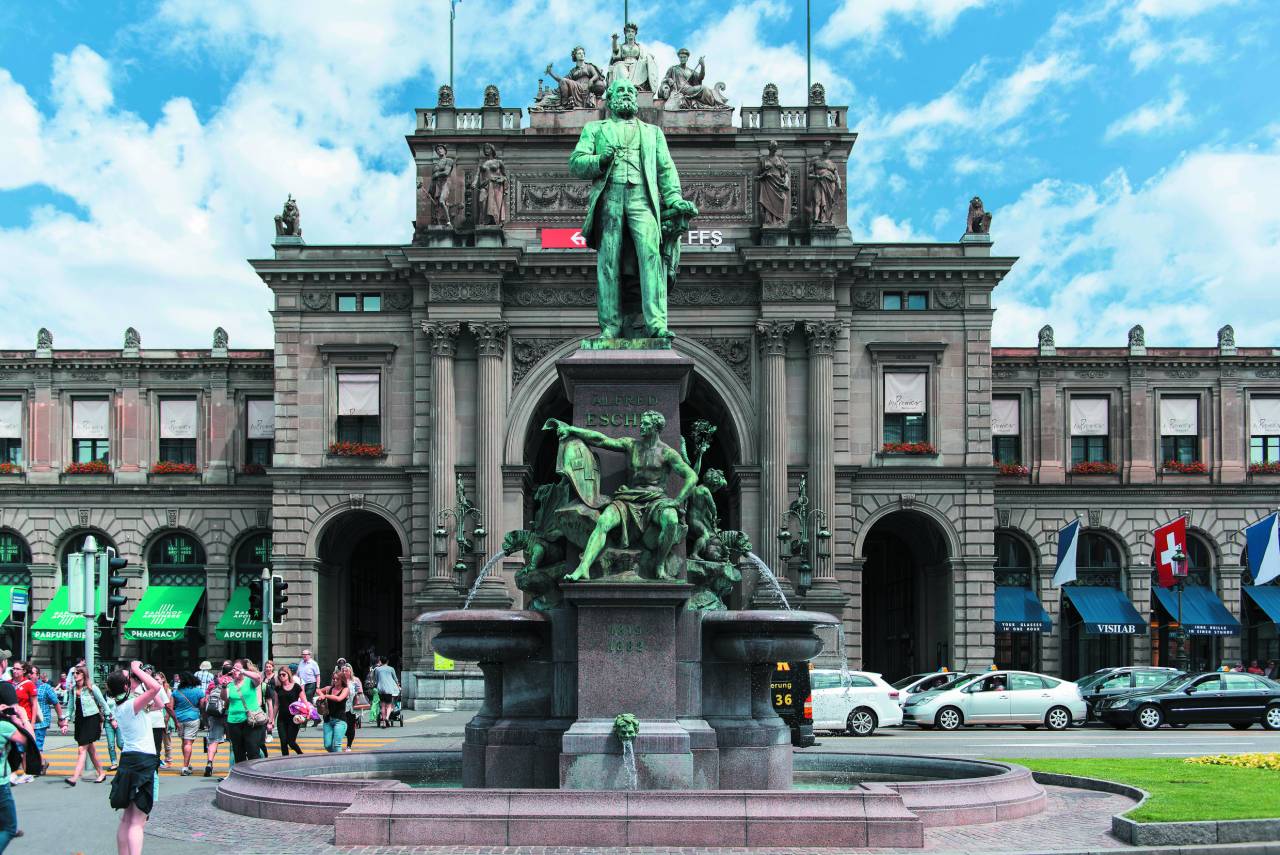 そのチューリッヒ中央駅の正面入口前に立っているのは、スイス鉄道の父と言われるアルフレッド・エッシャーの銅像です。