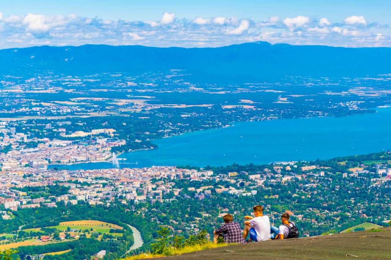 ジュネーブ市街から南東約7キロにある標高1375mのサレーヴ山はジュネーブ市民の親しみある地元の山。スイスではなくフランス領ですが、ジュネーブ市街、レマン湖の大噴水、フレンチアルプスまで見渡せます。ジュネーブ・コルナヴァン駅からバス8番のVeyrier-Douane行き(Veyrier-Tournettes行きではない)で25分、終点のVeyrier Douane下車。国境を越え10分でロープウェイ乗り場。山頂からハイキングコースがいくつかございます♪