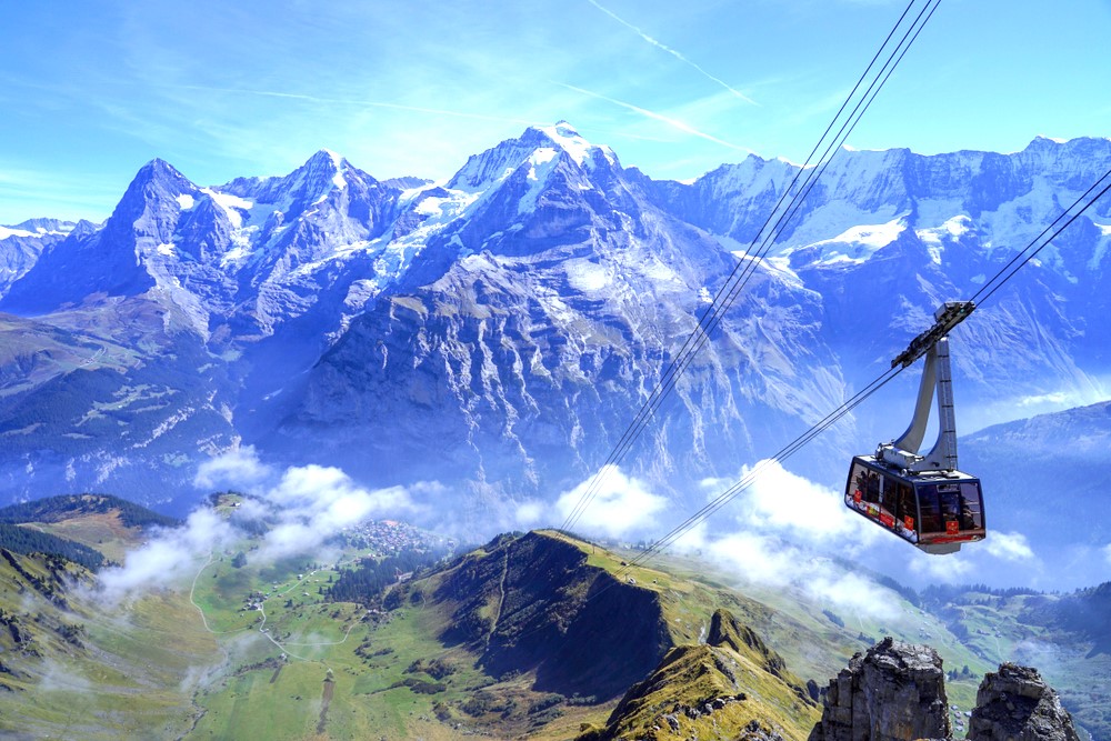 終日自由行動 晴天の日はシルトホルン展望台へ! ミューレンからロープウェイを乗り継ぎ所要時間:約20分 |