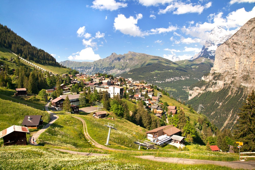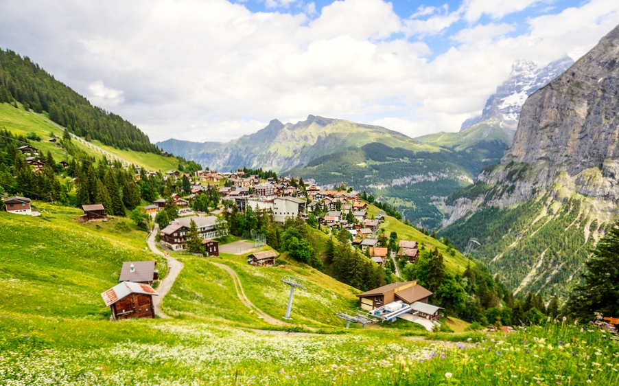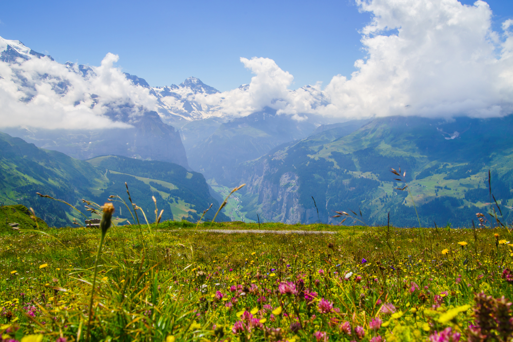 終日自由行動 例:ブルーメンタール(花の谷)へ ケーブルカーでアルメントフーベルへ上り(約5分)、ブルーメンタールを抜けてミューレンへ戻ります。6月から7月にかけてブルーメンタールには高山植物が花が一面に咲かせます。 ご希望で日本語ハイキングガイドを手配いたします。 |