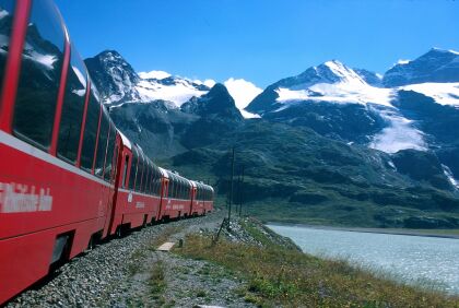ホテルにて朝食 鉄道パスを利用して、スイス4大鉄道「ベルニナ急行」にご乗車! <鉄道時刻> 【座席指定済み】 08:45 サンモリッツ発 11:12 ティラノ着 午後、お好きな時間に鉄道でサンモリッツへ戻ります。 |