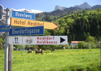 ホテルにて朝食 バス(5~10月の土日のみ運行)または徒歩でハイジ村へ 所要時間:バス約7分、徒歩約45分~ ハイジ村(ハイジドルフ) マイエンフェルト駅から約2.4キロ、徒歩約45分~。ハイジドルフ内には、ハイジの家を再現したハイジハウスや、ヨハンナ・シュピーリミュージアム、土産店、スイスで一番小さな郵便局、村の学校などがございます。 10時から17時オープン。最終入場15:45まで。 ハイジドルフから約500m、徒歩約10分の場所に、ハイジホフ(Heidi Hof)という名のホテル・レストランがあり、ボリューム満点の地元の料理を楽しめます。 ハイジ村の日本語パンフレット https://www.heididorf.ch/fileadmin/siteadministration/prospekte/Heididorf_Brochure_in_Japanese.pdf 上記パンフレット内に、駅からハイジ村を通って、駅に戻る周回コースが書かれています。 ハイジ村公式ウェブサイト 英語 https://www.heididorf.ch/en/ |