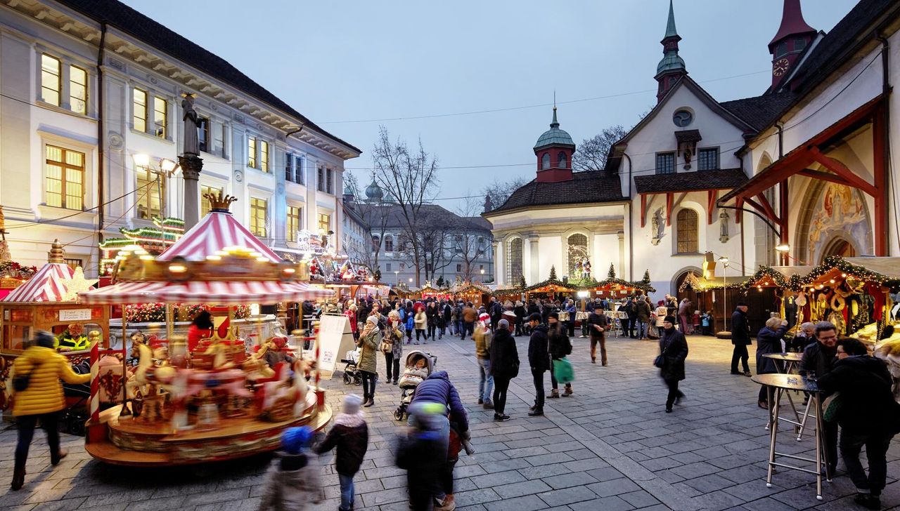 鉄道所要時間: 1時間 / 直通 ■ヨーロッパ最古の木造橋カペル橋、旧市街、ライオン記念碑、シュプロイヤー橋など ルツェルンのクリスマスマーケットをお楽しみください♪ 鉄道にてベルンへ戻ります。 |
